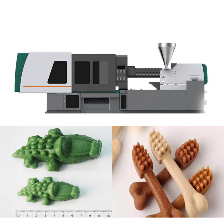 Eine Spritzenmaschine oder (Spritzgussmaschine), alias eine Einspritzungspresse, ist eine Maschine für Herstellungshaustierfestlichkeitsprodukte durch den Spritzenprozeß. Er besteht zwei Hauptteilen, einer Einspritzeinheit und aus einer Spanneinheit. ist spezielle Maschinerie für das Produzieren von Haustierimbissen.